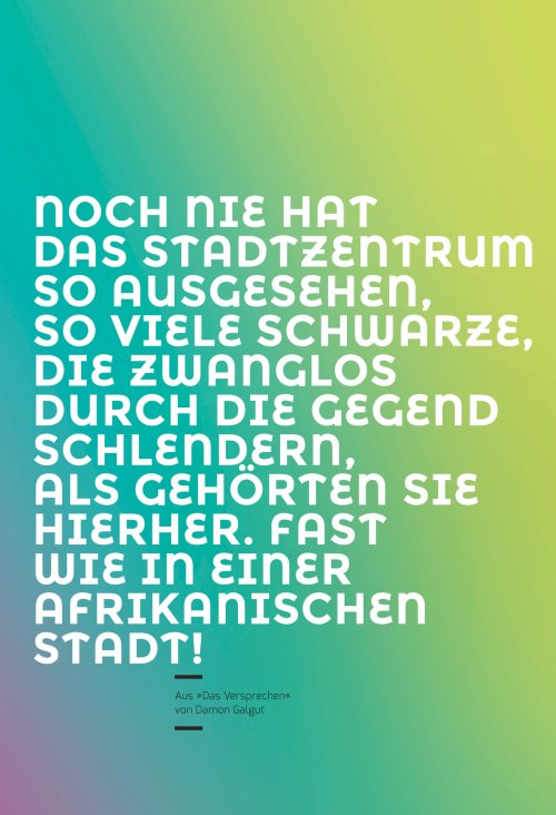 Zitat rechts aus: Damon Galgut, »Das Versprechen«, PLatz 1