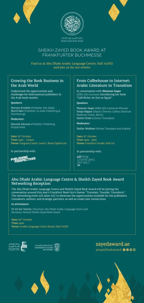 Im Rahmen der Frankfurter Buchmesse 2022 hat Litprom zusammen mit den Sheikh Zayed Book Awards dieses Diskussionspanel organisiert, das jetzt auf Arabisch und Deutsch auf YouTube abrufbar ist.
